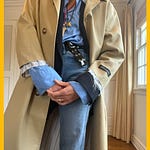 I love a more literally 70s inspired suede skirt with patch pockets or big buttons, etc, but there’s something about how solid and clean this one is that makes me extra love it. And, what could be easier than a mini skirt and a denim jacket? The jacket has nicely oversized Dolman sleeves, and then is slightly cinched in at the waist to give it a really interesting shape - you can see it better in the video, but this isn’t your standard fitting denim jacket, which IMO justifies its position in your wardrobe. This is slightly dressier than I typically go for a standard day (a mini skirt does make momming tricky sometimes), but if I don’t have to squat down on the ground, I’d love to be in a mini skirt.